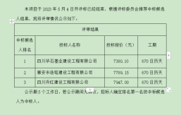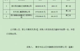 成雅工業(yè)園區(qū)百丈安置房二期項(xiàng)目鋼筋采購(gòu),根據(jù)有關(guān)法律、法規(guī)、規(guī)章的規(guī)定,于2023年4月21日經(jīng)雅安市名山區(qū)益業(yè)商貿(mào)有限公司競(jìng)爭(zhēng)性談判比選流程,評(píng)審工作已經(jīng)結(jié)束,成交人已經(jīng)確定,現(xiàn)將成交結(jié)果公示如下:成交單位名稱:四川霞成商貿(mào)有限公司成交價(jià):加成價(jià)30元/噸進(jìn)場(chǎng)時(shí)間:待甲方通知成交質(zhì)量要求:合格自成交結(jié)果公示之日起一個(gè)工作日內(nèi),對(duì)成交結(jié)果無(wú)異議的,采購(gòu)人將簽發(fā)成交通知書,并在五個(gè)工作日內(nèi)簽訂合同。雅安市名山區(qū)益業(yè)商貿(mào)有限公司2023年4月23日...